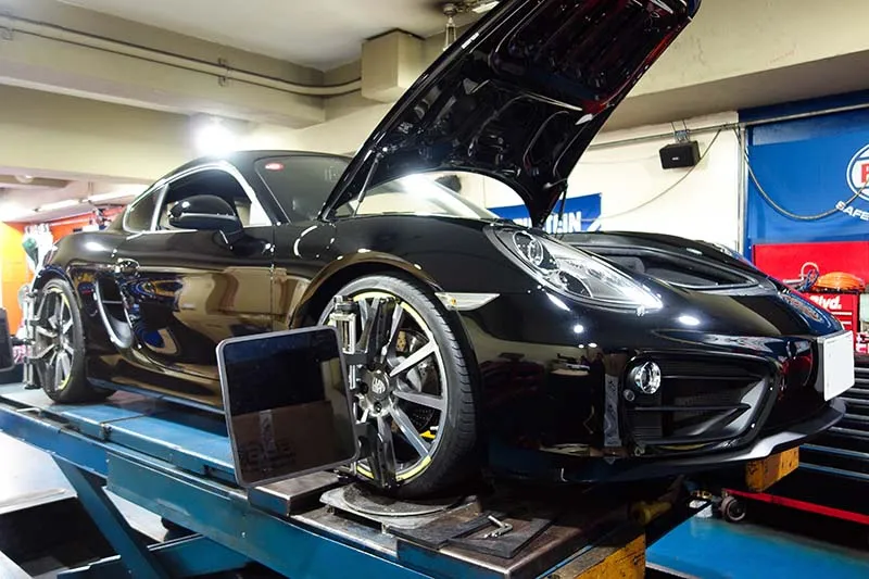 ホーム » 施工事例 » ポルシェ981ケイマンにビルシュタインB16 PASM対応車高調整式サスペンション取付・ローダウン