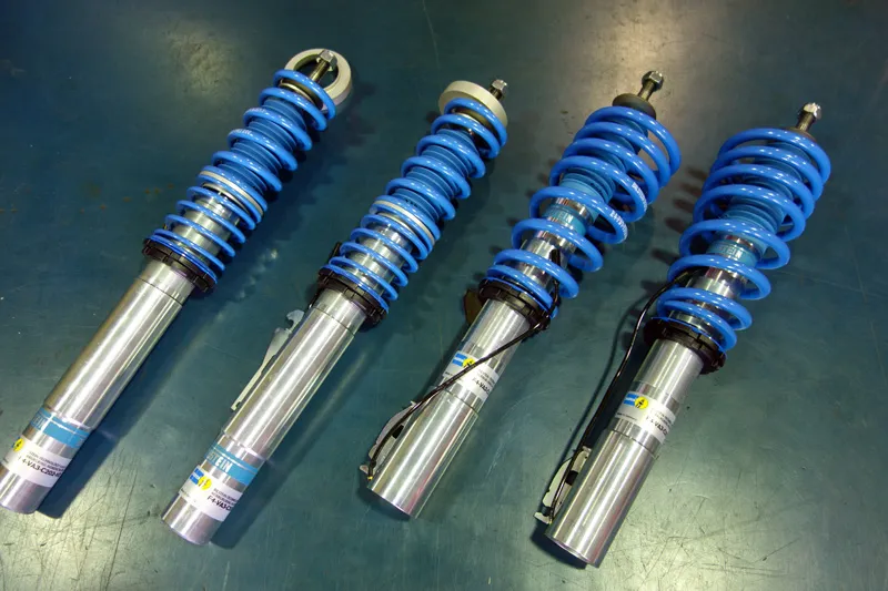 ポルシェ前期987ケイマンSにビルシュタインB16車高調を装着にてノーマル比-30mmのローダウンを行いサンライズブルバードオリジナルスペックのTWS Motorsport T66-F 18インチホイールを装着。