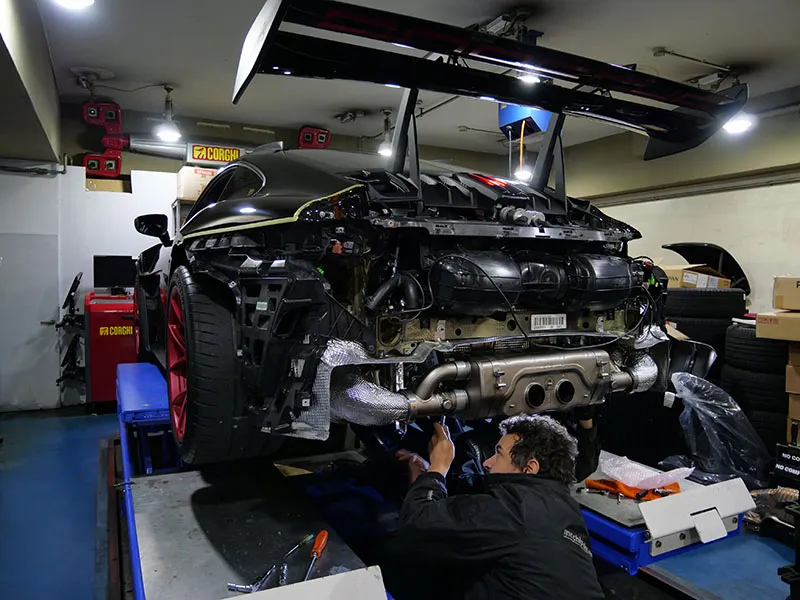 ポルシェ992GT3RSへエキゾースト変更のご依頼をいただき、Akrapovic Slip-on Exhaust + Link pipe Adaptorを装着。Akrapovicエキゾーストはフルチタニウム製で最もエキゾーストブランド中で高品質な商品になります。GPFが装着されている992GT3RSでもそのまま装着が可能でエンジンチェックランプの点灯もありません。