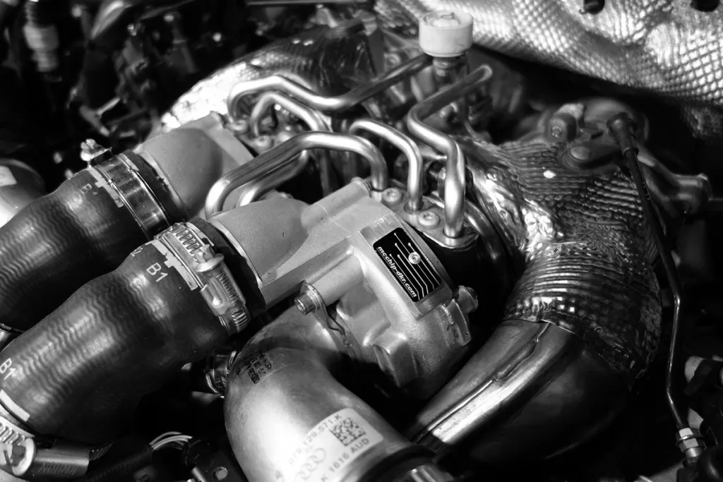 アウディS8 (4H) 4.0TFSIのパフォーマンスチューニングのご依頼にて、mcchip-dkrが手がけるmc780 stage3チューニングを実施。stage3チューニングでは200cpsiスポーツ触媒付きエキゾーストダウンパイプの交換、mc780アップグレードターボチャージャーへの交換、専用ECUチューニングプログラムの施工となります。ノーマル520ps / 575Nm → 775ps / 920Nm(+255ps / +345Nm)の大幅なパフォーマンスアップが得られるメニューとなっております。ビッグターボチャージャーへの交換によるターボラグは一切なく3000rpm〜REVリミットまで強烈な加速とパワーで2T越えの重量サルーンでも軽快な走りを体感いただけます。