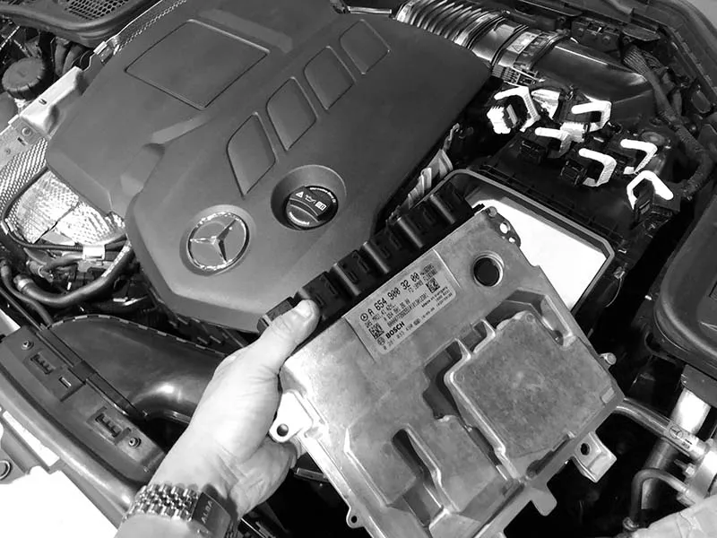 メルセデスベンツ後期W205 Cクラス C220d 2.0Lディーゼルターボ車両のコンピューターチューニング施工。2018年式以降の後期型C220dには新型BOSCH MD1 ECUが搭載されmcchip-dkrでは既にBOSCH MD1 ECUの開発を終えコンピューターチューニングがご案内可能です。